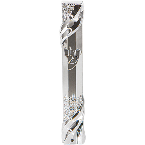 מזוזה פלסטיק 12 ס"מ "ירושלים" כסף עם פקק גומי