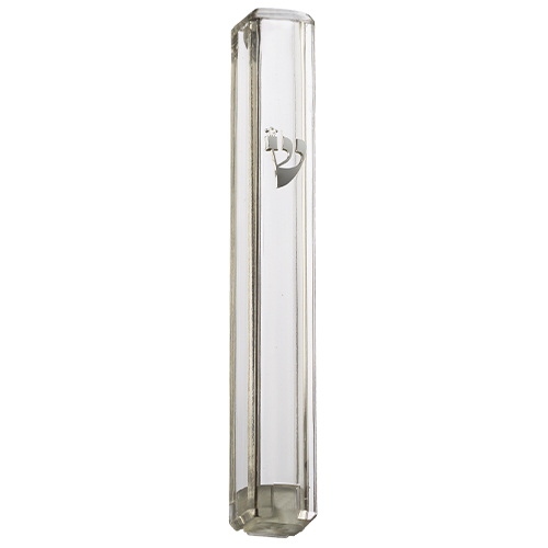 מזוזה אקריליק נצנץ כסף עם ש מאקריליק 12 ס"מ