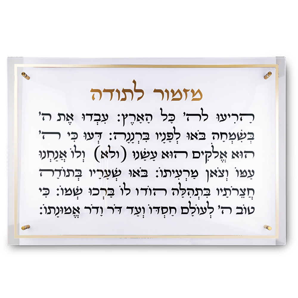 מזמור לתודה מלבן אקריליק מסגרת זהב ענק 90X59 ס"מ