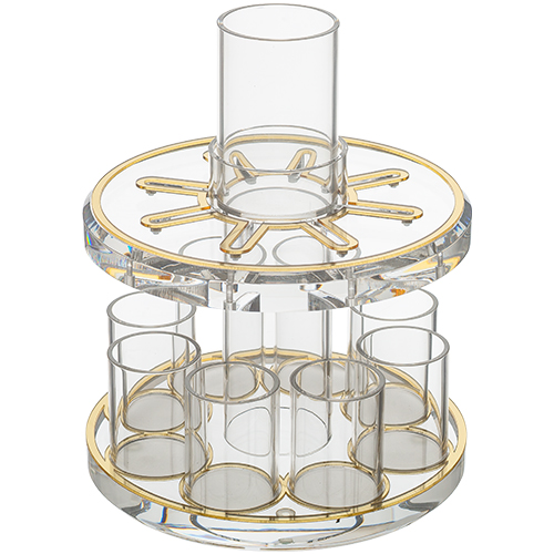 / מחלק יין מאקריליק מהודר "זהב" עם 8 כוסות 21 ס"מ