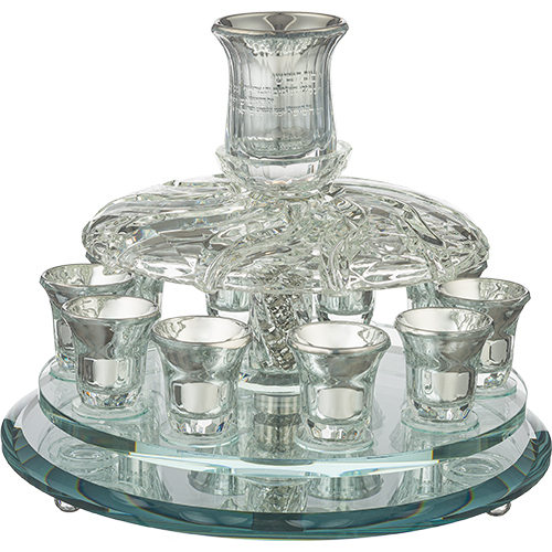 מחלק יין מסתובב קריסטל מהודר עם 8 כוסיות "כסף" 25X33 ס"מ