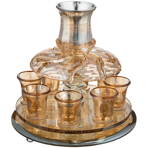 מחלק יין מסתובב קריסטל מהודר עם 8 כוסיות "זהב" 25X33 ס"מ