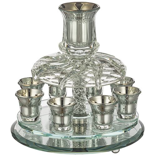 מחלק יין מסתובב קריסטל מהודר עם 8 כוסיות "כסף" 25X33 ס"מ