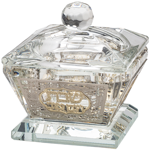 מעמד לגפרורים קריסטל עם פלקטות "עיטורים" 12X12 ס"מ