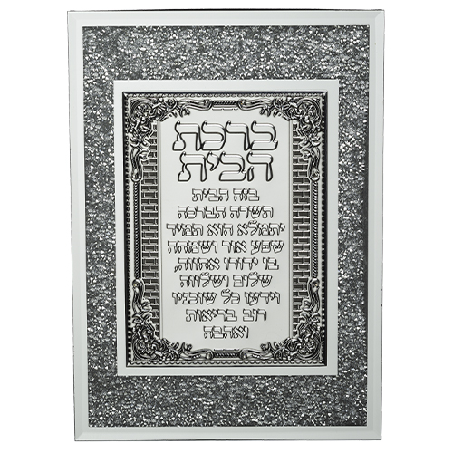 / מסגרת זכוכית עם אבנים לבנות ופלקטה ברכת הבית 20X28 ס"מ