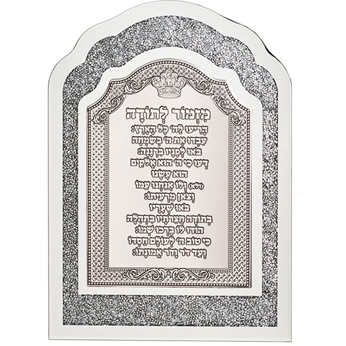מסגרת זכוכית עם אבנים לבנות ופלקטה מזמור לתודה 33X24 ס"מ