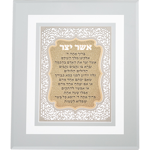 מסגרת זכוכית עם פלקטה חיתוך לייזר "אשר יצר ע.מ" 28X23 ס"מ