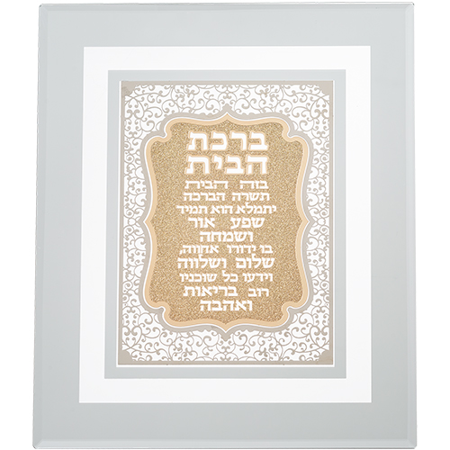 מסגרת זכוכית עם פלקטה חיתוך לייזר "ברכת הבית" 28X23 ס"מ