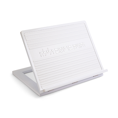 / סטנדר מעץ לבן עם פלקטה דמוי עור ואותיות בולטות 38×30 ס"מ