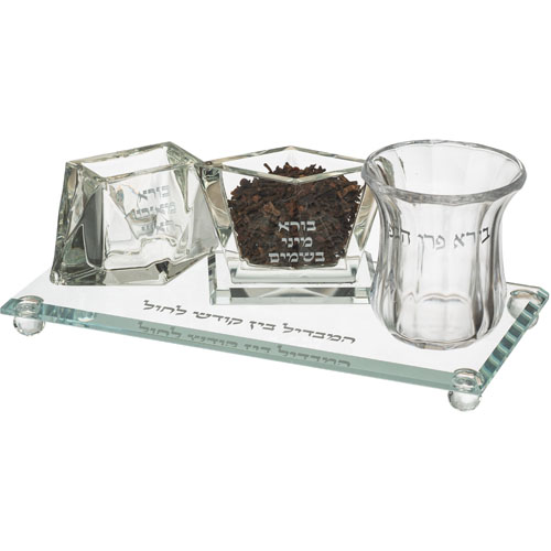 סט הבדלה מהודר מקריסטל עם מגש 25 ס"מ