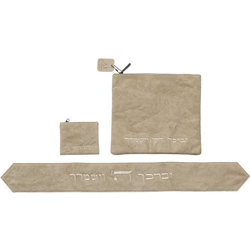 / סט חלאקה דמוי עור בז יברכך+טלית