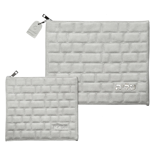 סט טלית תפילין דמוי עור צבע בטון "כותל" עם הבלטה