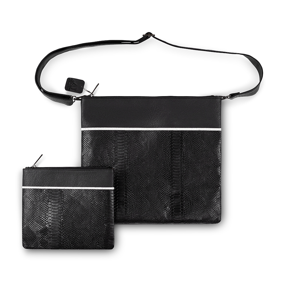 / סט טלית תפילין דמוי עור שחור עם ריקמה 36×34 ס"מ