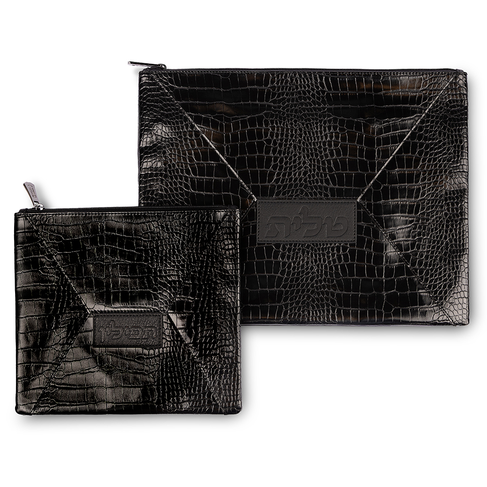 / סט טלית תפילין דמוי עור שחור 36X29 ס"מ