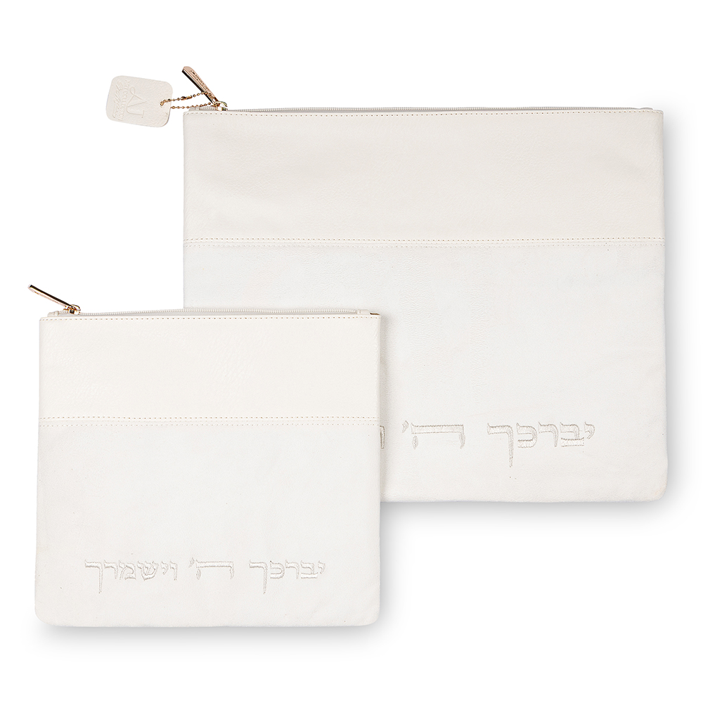 / סט טלית תפילין מהודר דמוי עור לבן 36X30 ס"מ