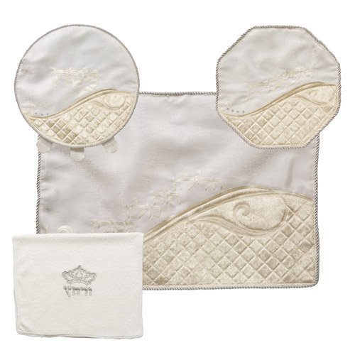 סט פסח ברוקט 4 חלקים הכולל כרית הסבה, כיסוי פסח, אפיקומן, מגבת אריזת פיויסי
