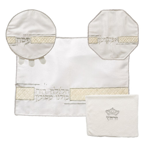 סט פסח ברוקט 4 חלקים הכולל כרית הסבה, כיסוי פסח, אפיקומן, מגבת אריזת פיויסי