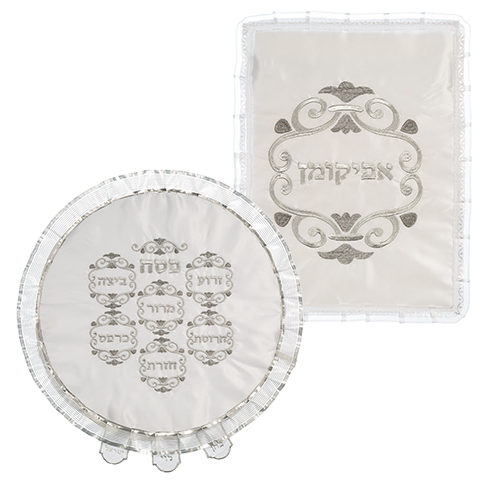 סט פסח ברוקט 4 חלקים הכולל כרית הסבה, כיסוי פסח, אפיקומן, מגבת אריזת פיויסי