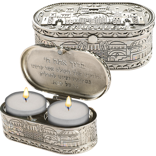 / שש0410 פמוטי נסיעה ניקל בקופסא עם מכסה "ירושלים" 4X9 ס