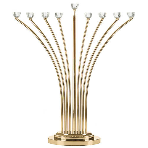 / פריץ חנוכיית מתכת עם ראשי קריסטל גימור זהב 76 ס"מ