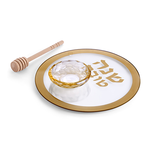 / צלחת זכוכית מהודרת לתפוח בדבש 19 ס"מ