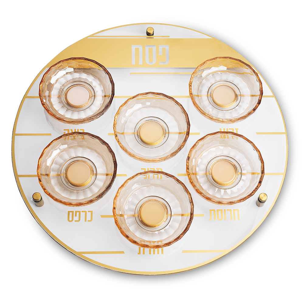 צלחת פסח מזכוכית וקריסטל מהודרת 40 ס"מ