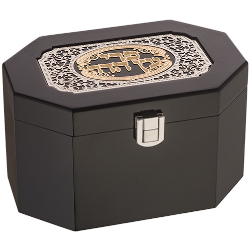 / קופסא לאתרוג עץ מהגוני עם פלקטה מוכספת 11x18x12 ס"מ