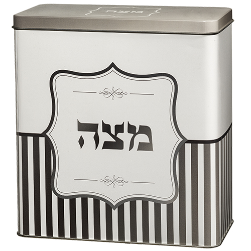 / קופסת פח למצות דגם אפור פסים 20.5X19 ס"מ