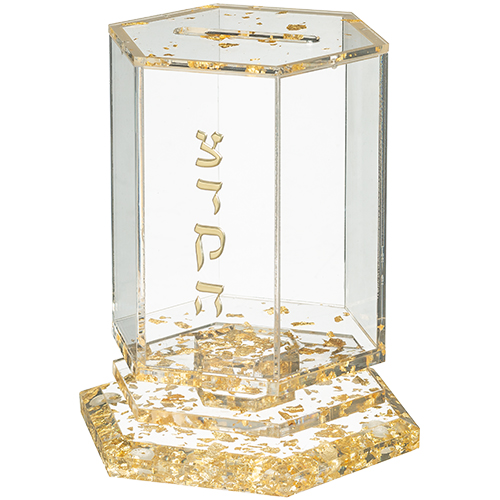 קופת צדקה אקריליק מהודרת גוון זהב 12X8 ס"מ