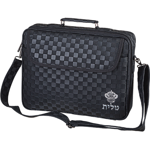 תיק טלית גדול גוון שחור פיו מפואר אותיות בולטות "כתר" 43X36 ס"מ