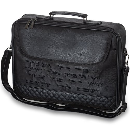 תיק טלית דמוי עור שחור פיו מפואר עם רקמה "יברכך" 43X36 ס"מ