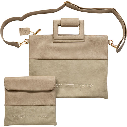 / תיק טלית תפילין מהודר דמוי עור קרם רקמה יברכך 38X31 ס"מ