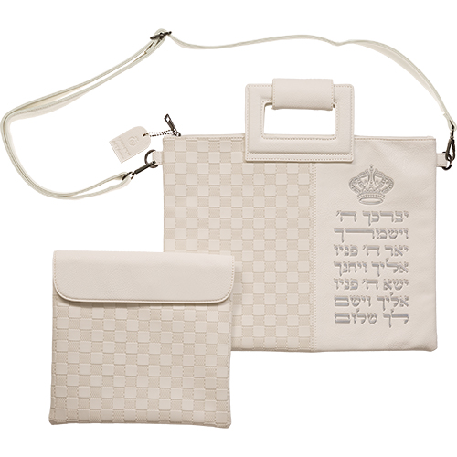 סט תיק טלית תפילין פיו לבן יברכך אותיות בולטות זהב