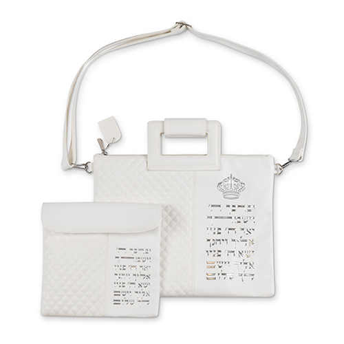 תיק מפואר לטלית דמוי עור לבן אותיות בולטות