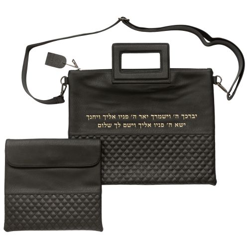 / תיק מפואר לטלית דמוי עור שחור אותיות בולטות "ויברכך" זהב 31X38 ס"מ