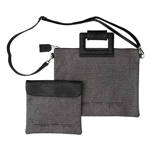 / תיק מפואר לטלית פשתן ודמוי עור עם ריקמה 31X38 ס"מ