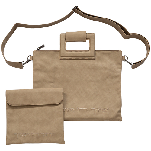 / תיק מפואר לטלית תפילין דמוי עור אפור "יברכך" 38X33 ס"מ