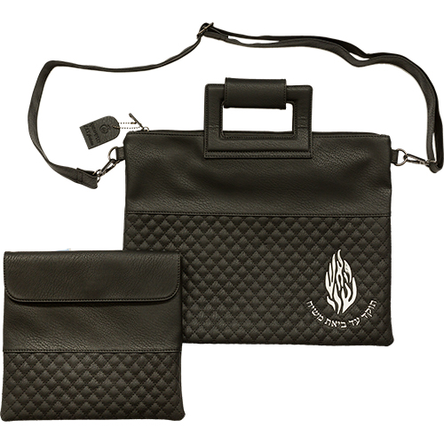 / תיק מפואר לטלית תפילין דמוי עור גוון שחור עם הבלטה "האש שלי" וידיות 38X31 ס"מ
