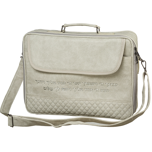****תיק מפואר לטלית דמוי עור לבן אותיות בולטות