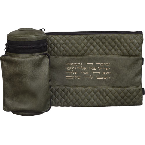 כמות של תיק תפ טרמי דמוי עור ירוק עם אותיות בולטות יברכך 22 ס"מ