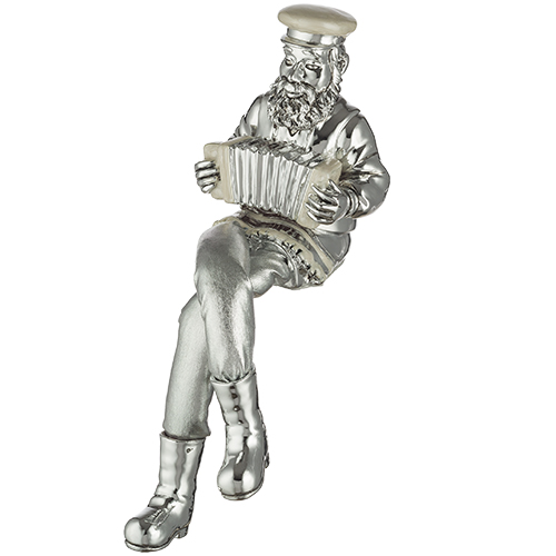 חסיד יושב מפוליריזין מוכסף עם רגלי בד כסף מנגן
